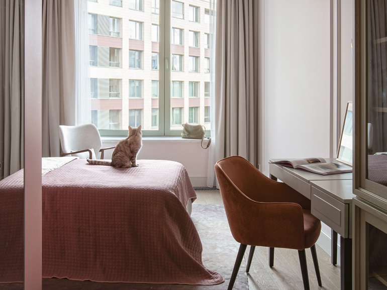 Этот случай уникален тем, что процесс ремонта шел параллельно с правками и изменениями в постоянном диалоге заказчиков и дизайнеров. Возможно, именно поэтому в финальном варианте запечатлена живая текучесть форм, которая раскрывается в пристальном всматривании в тонкую стилистическую игру элементов разных визуальных языков. Дизайн этой квартиры можно читать, словно повесть об интерьере XX–XXI веков, снова и снова открывая смыслы в гармонии мотивов.