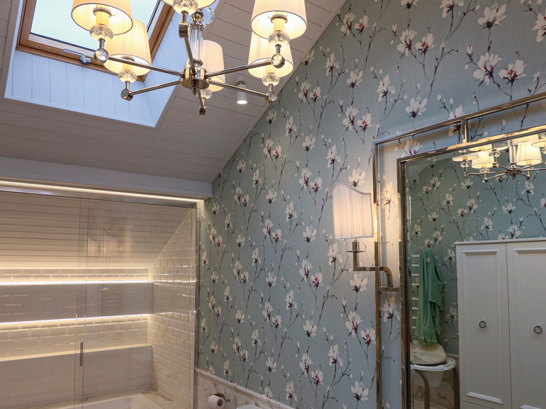 Сдержанная неоклассика первого этажа и уютный кантри второго не вступают в визуальное противоречие: неоклассические элементы, формирующие основной стиль гостевой зоны, становятся нейтральным фоном для мотивов кантри в приватных комнатах наверху. С помощью деталей интерьера дизайнеру удалось добиться стилистической целостности интерьера: латунные светильники на первом и втором этажах, оттенки теплого коричневого в текстиле и мебели объединяют все пространства в единую дизайнерскую концепцию.